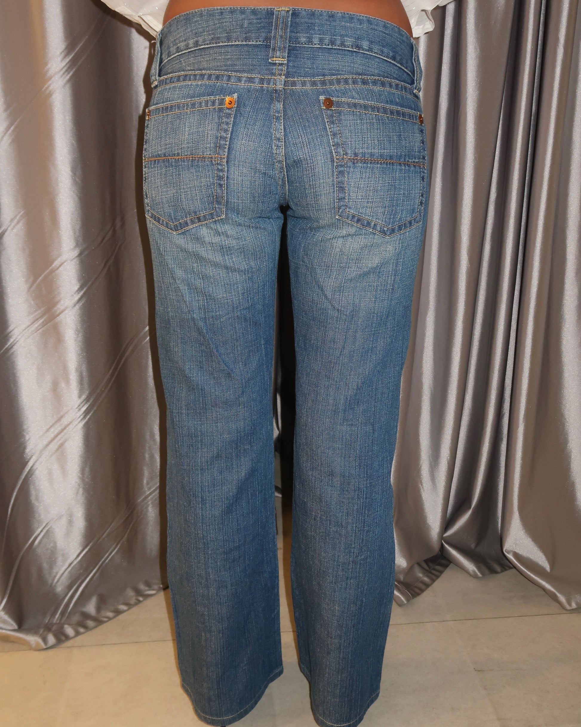 Classic low-rise blue jeans crafted from a soft cotton-blend denim with natural fading throughout. Designed with a straight-leg silhouette, contrast stitching, and a timeless five-pocket construction for an easy, everyday fit.